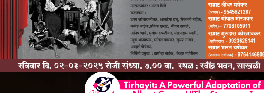 The Samrat Club of Dicholim is proud to present Mangirish Youth Club’s latest production, “Tirhayit”, a mesmerizing adaptation of Albert Camus’ Nobel Prize-winning novel “The Strangers”. This thought-provoking play is set to captivate audiences at the Ravindra Bhawan in Sakhali, Goa, today evening at 7:00 pm.