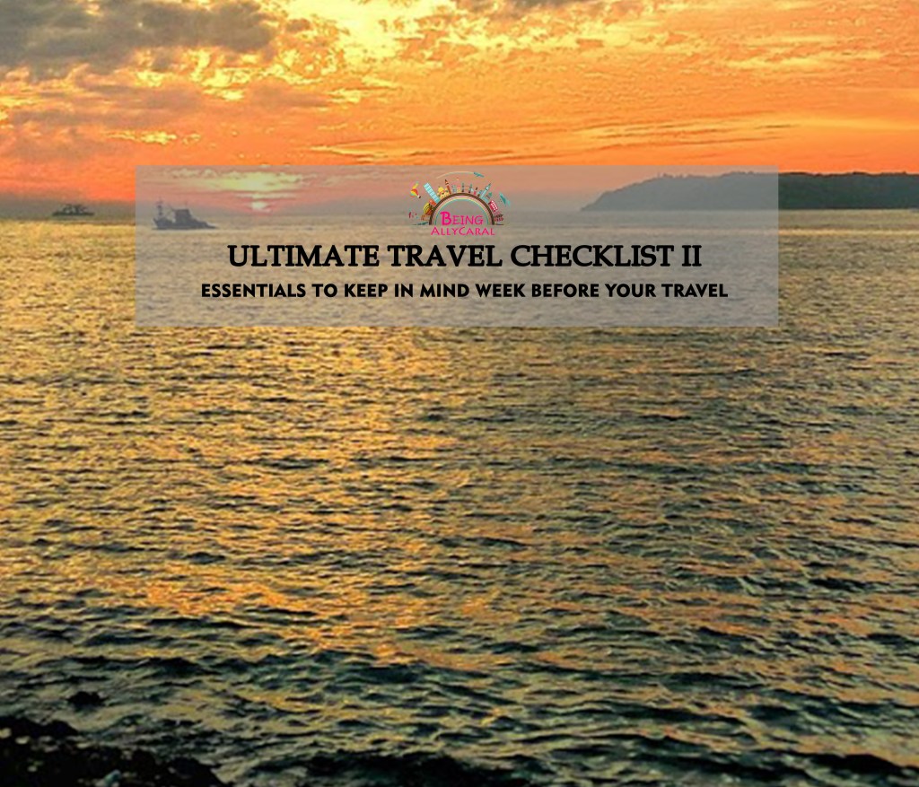 It’s a beautiful Tuesday and as promised continuing the the Series of Ultimate Travel Checklist which we began last week in #BeingallycaralTuesdaytips 👒 I am back here again to speak about the next phrase of the Checklist. This week, we will discuss about What are the things one needs to keep in mind – a week before your travel.