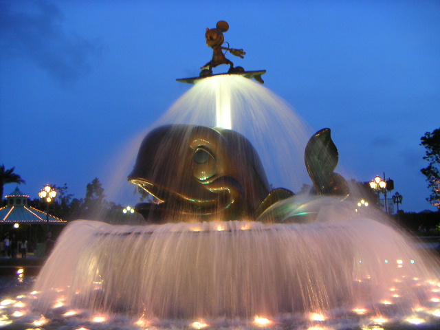 When you enter the Disneyland the first thing one can see is the Micky Mouse fountain, where the Mickey Mouse is standing on a shark and it keeps moving upwards and down, welcoming everybody to his island. The instant first photo opportunity.